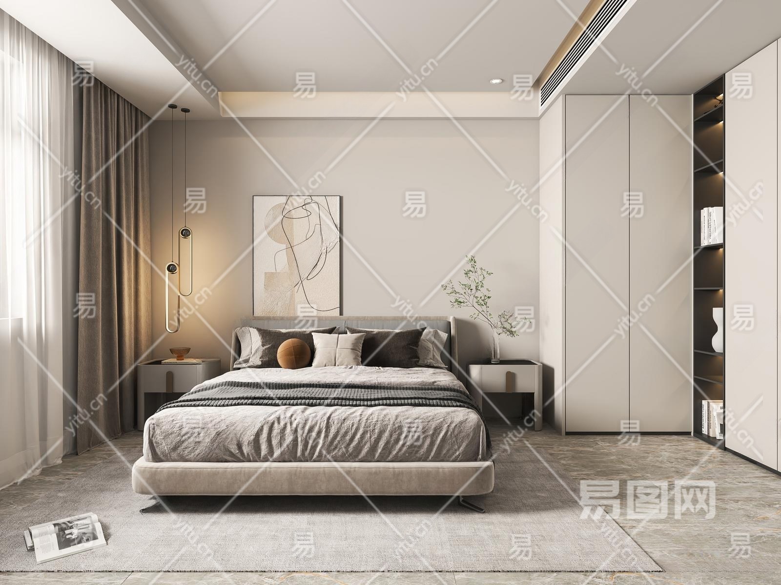 现代家居卧室3D模型下载