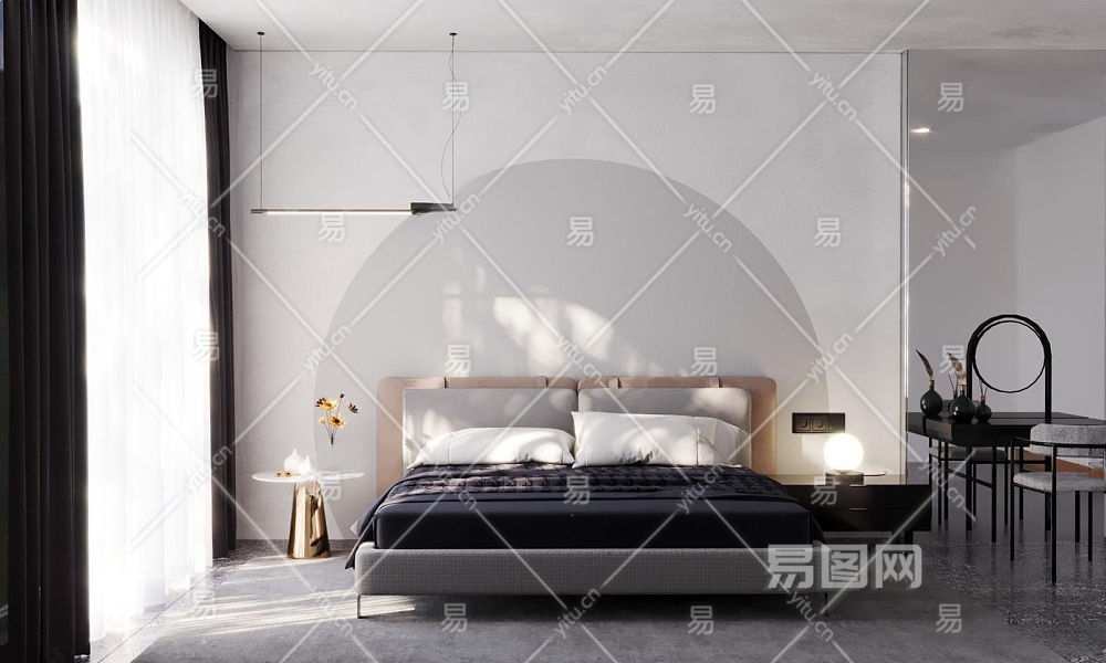 现代家居卧室3D模型下载