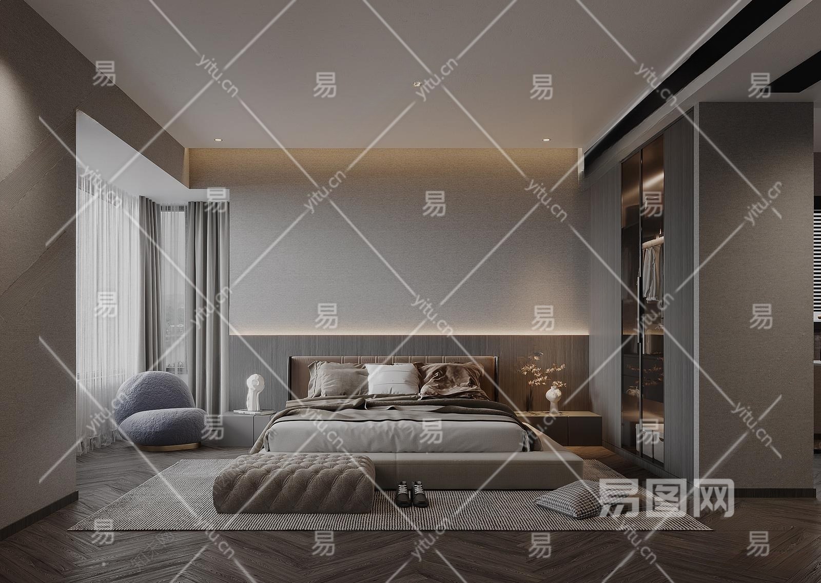 现代家居卧室3D模型下载