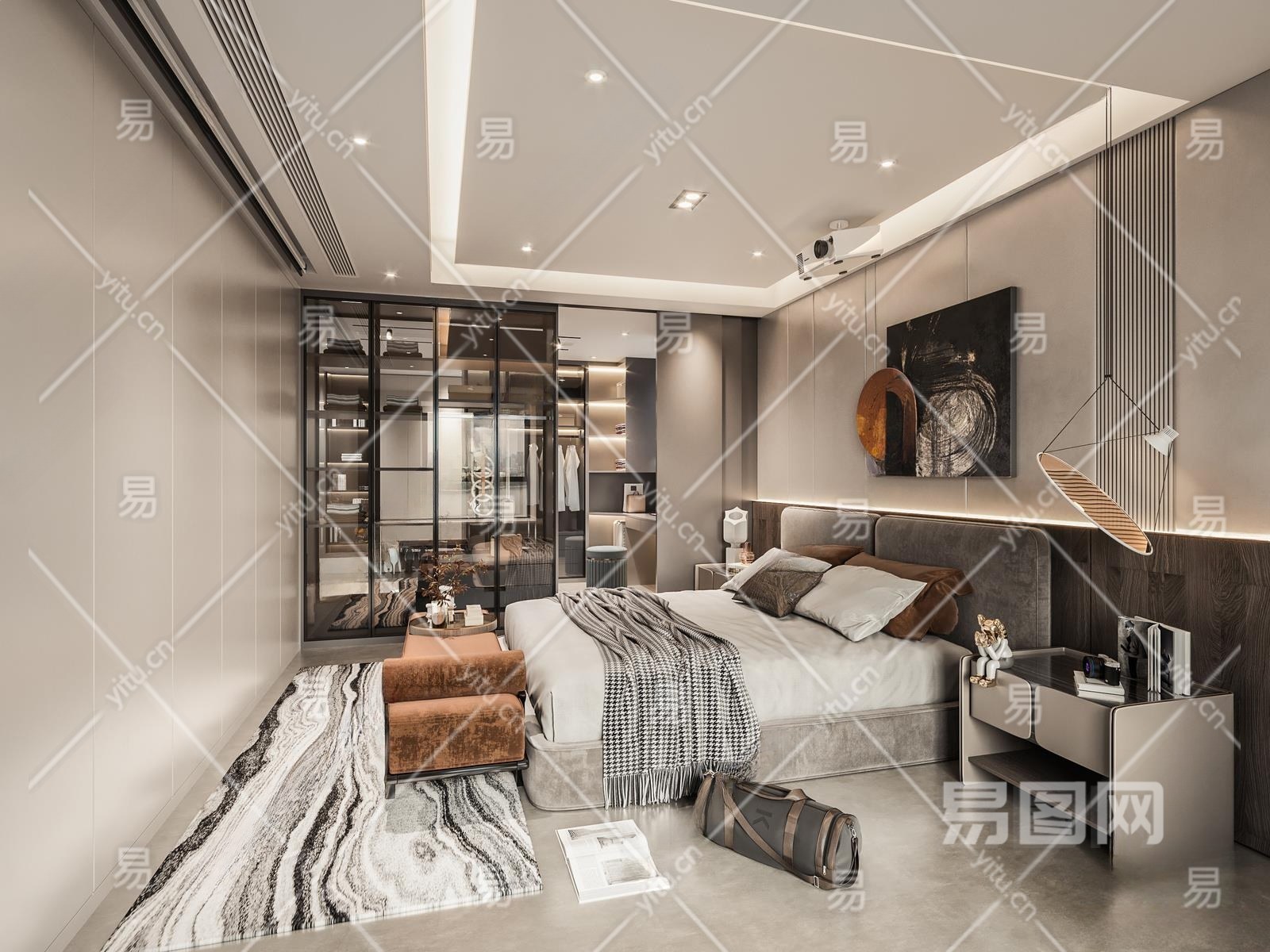 现代家居卧室3D模型下载
