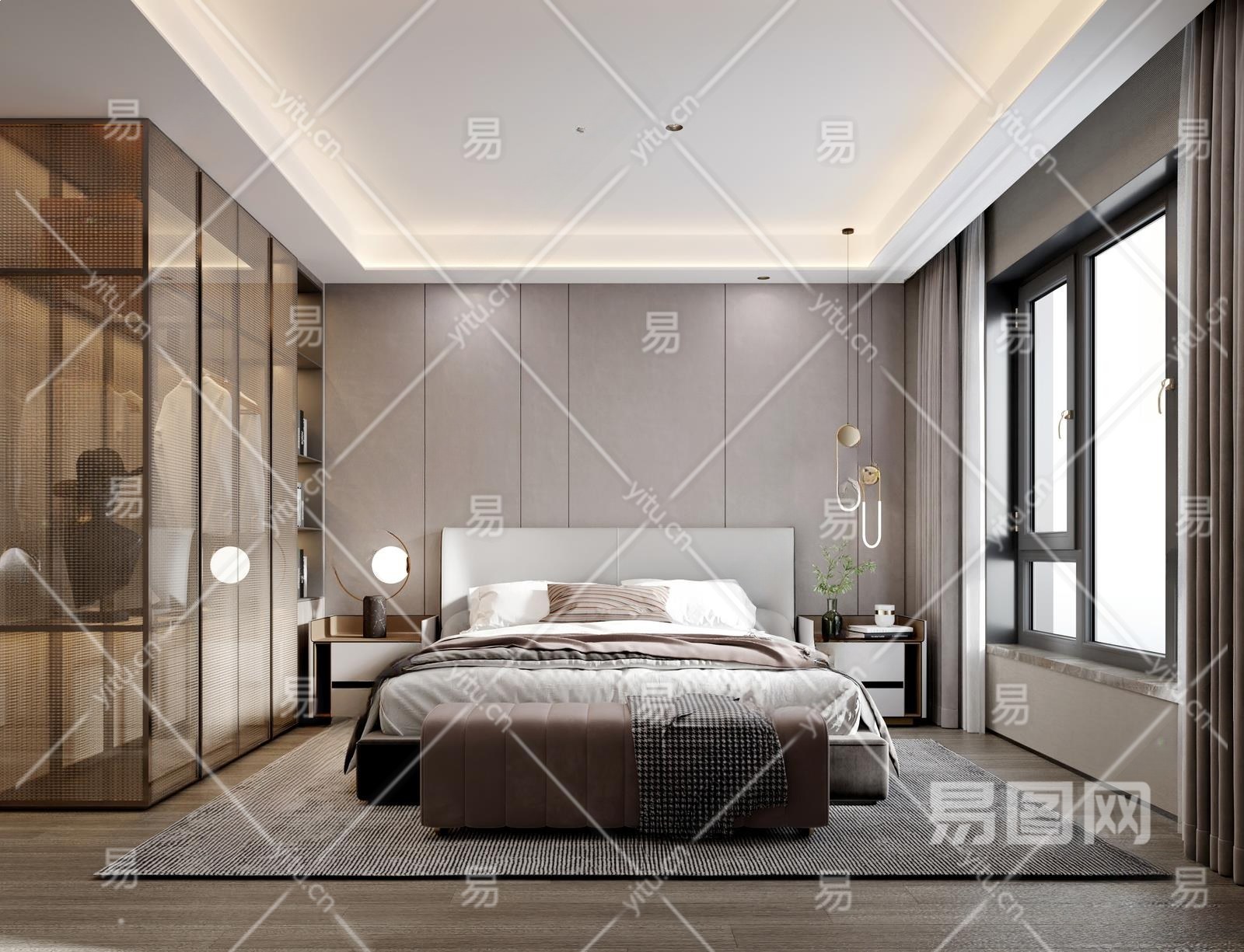 现代卧室3D模型下载