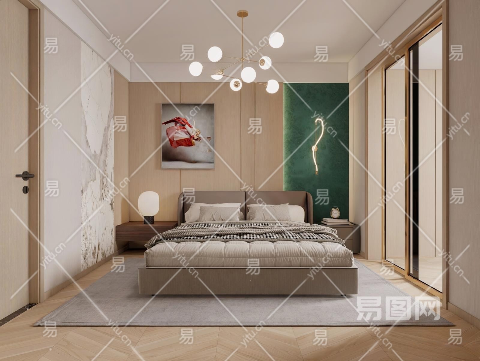 现代卧室3D模型下载