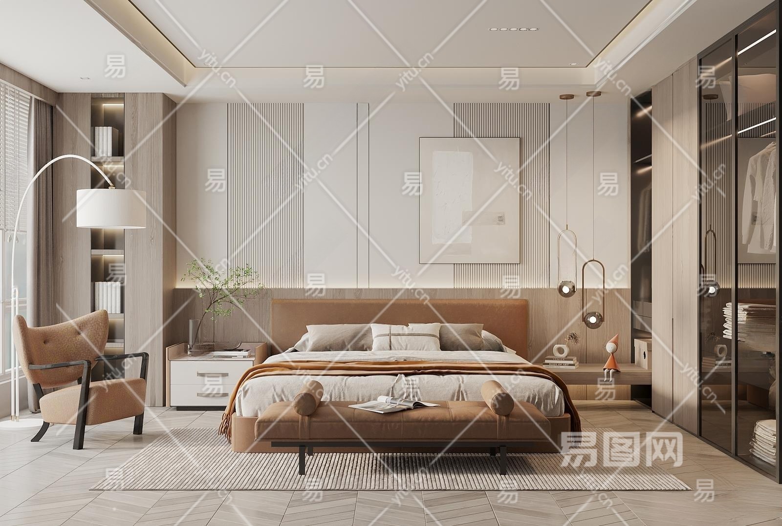 现代卧室3D模型下载