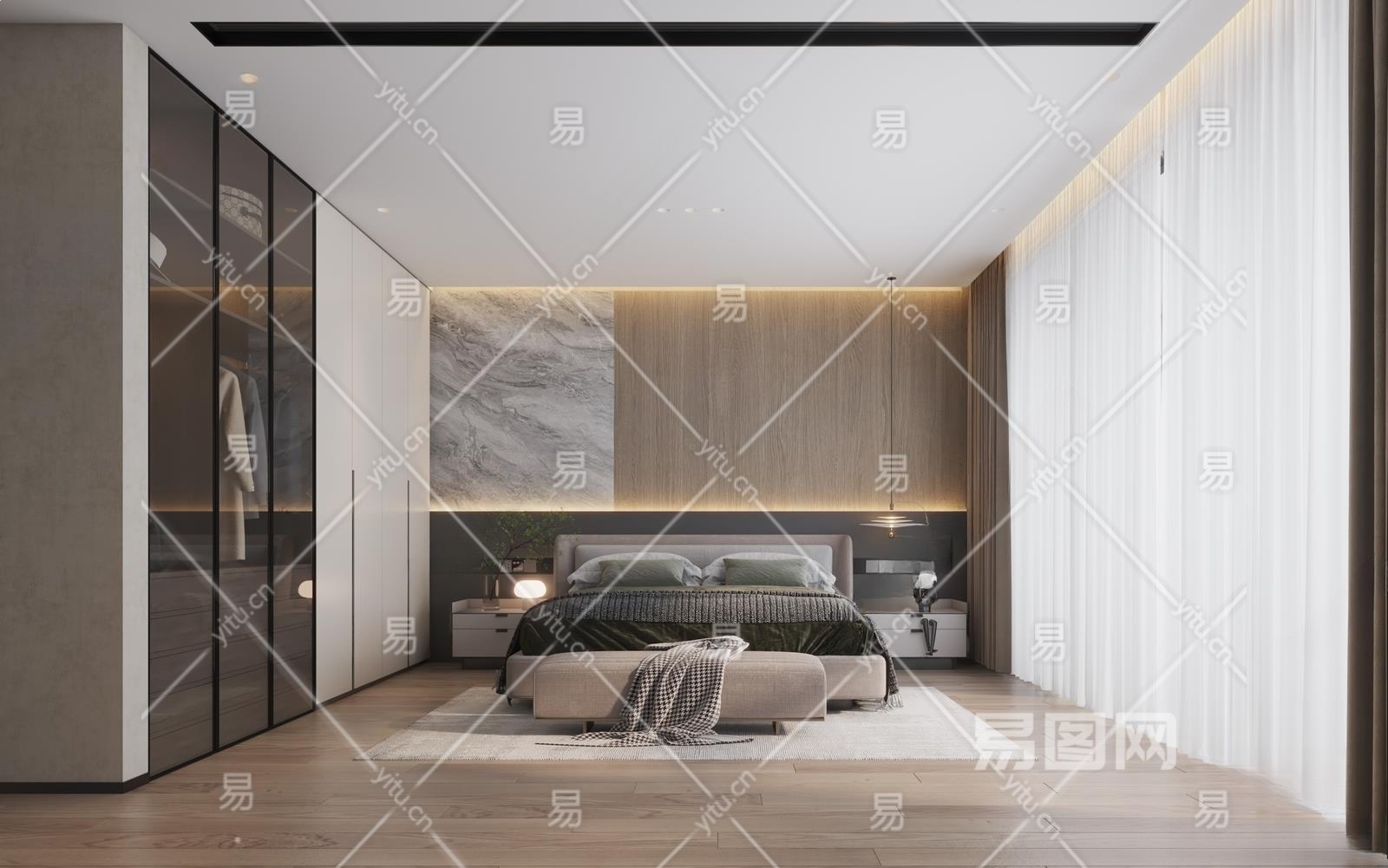 现代卧室3D模型下载