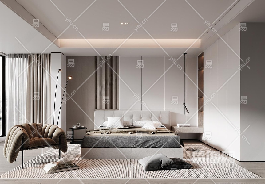 现代家居卧室3D模型下载