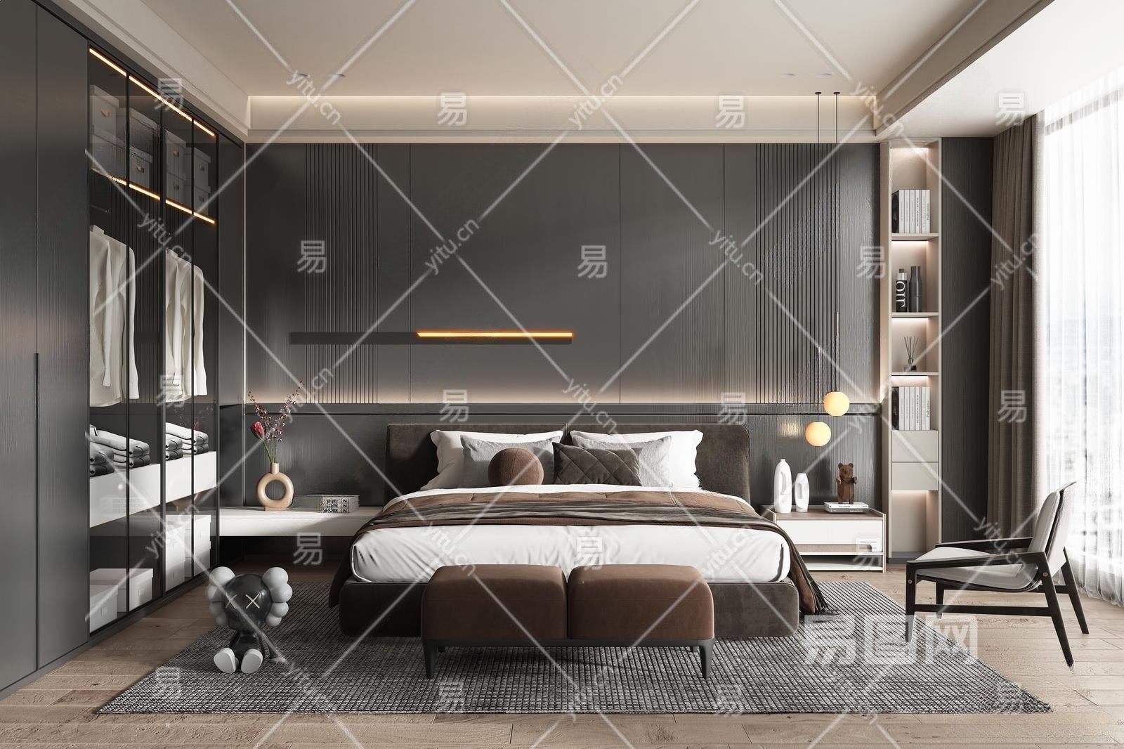现代家居卧室3D模型下载
