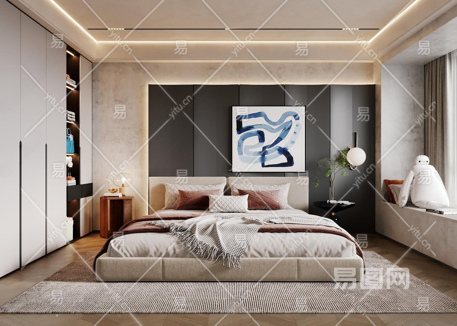 现代卧室3D模型下载