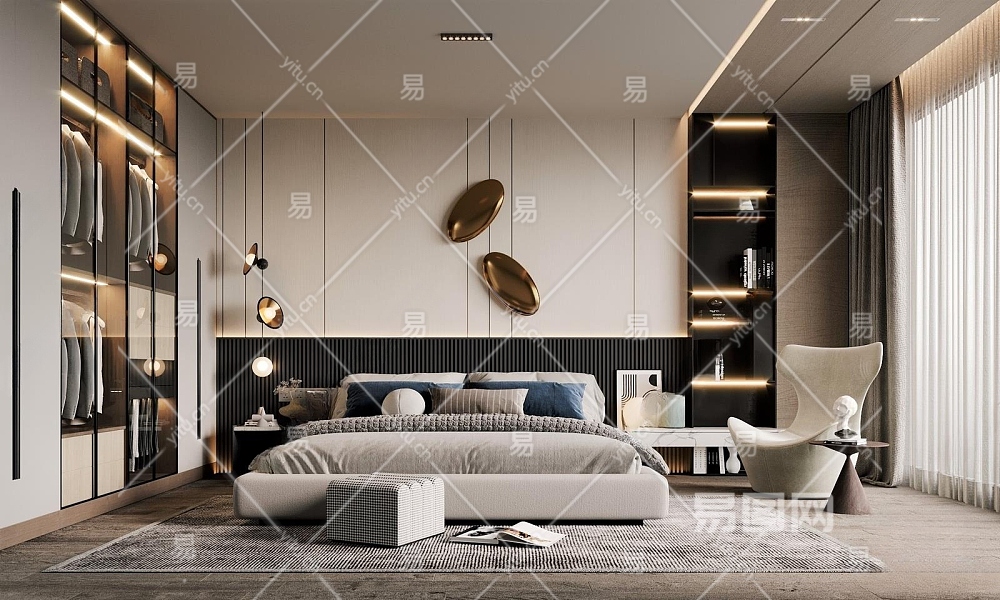 现代卧室3D模型下载