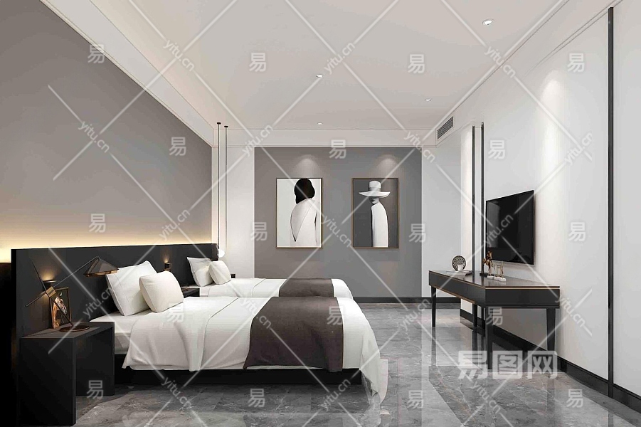 现代卧室3D模型下载