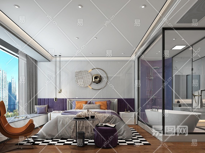 现代主卧3D模型下载