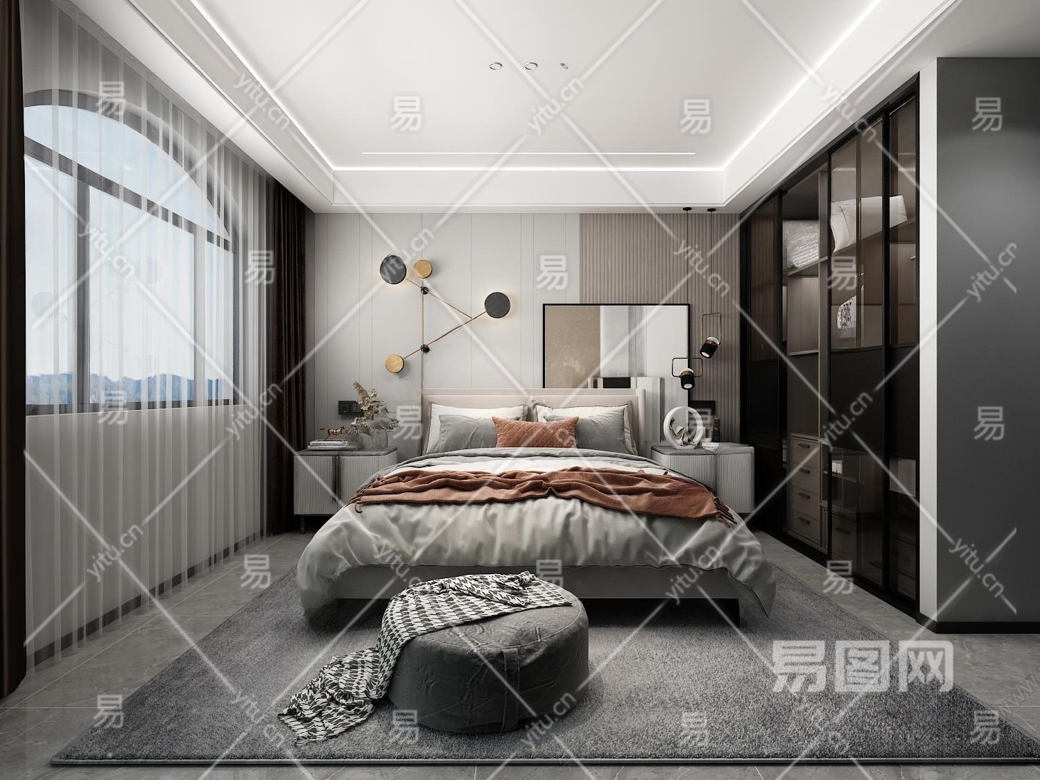 现代极简主卧室3D模型下载