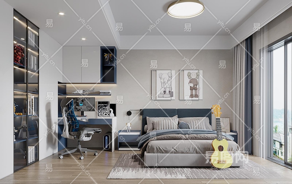 现代男孩房卧室3D模型下载