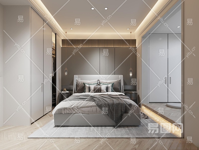 现代家居卧室3D模型下载