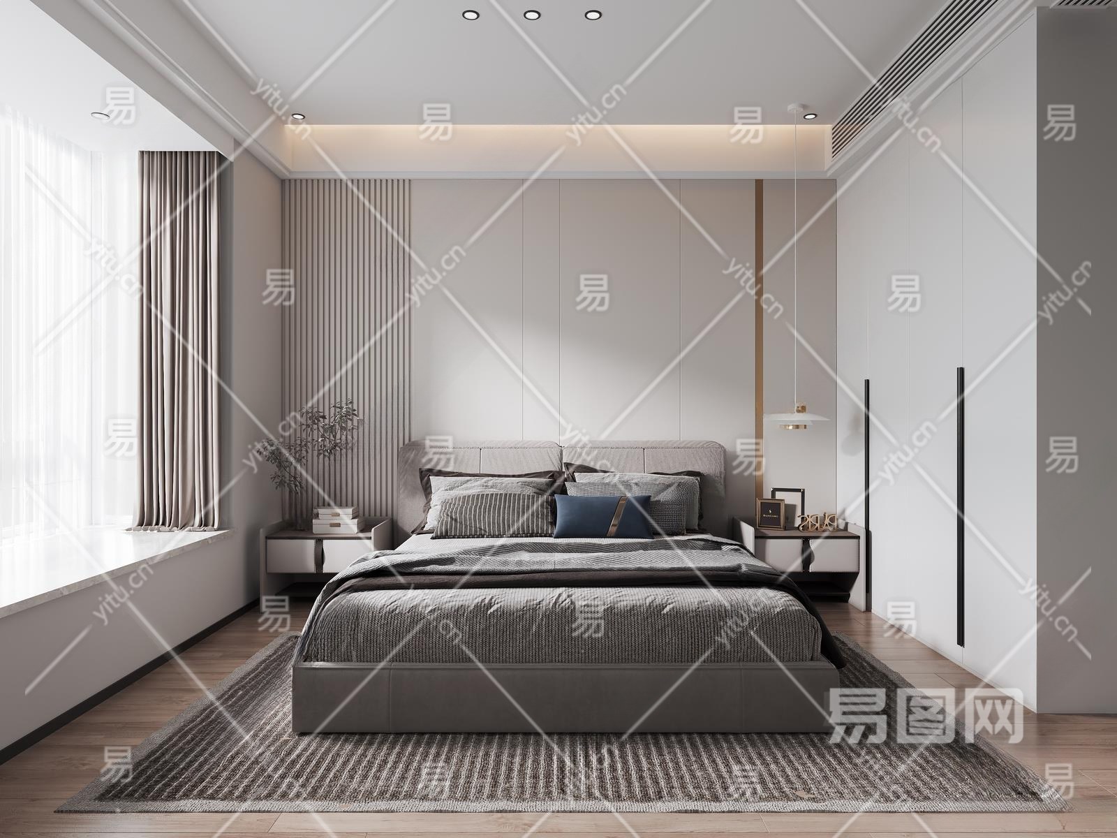 现代家居卧室3D模型下载