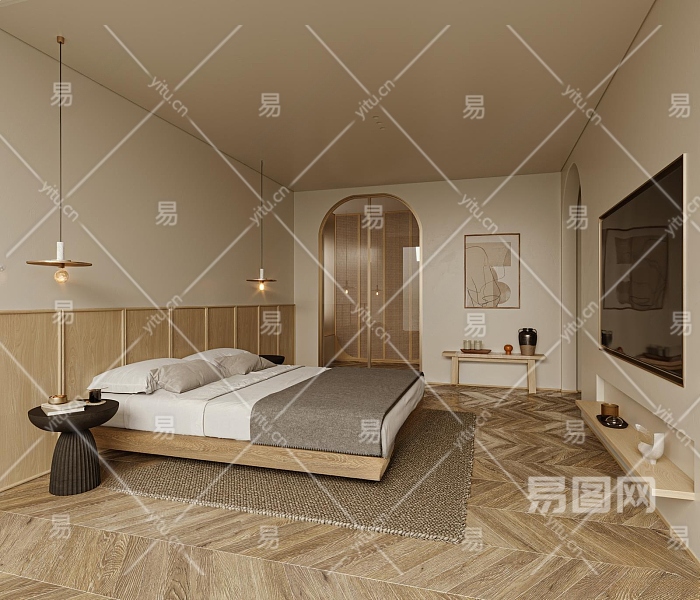 现代家居卧室3D模型下载