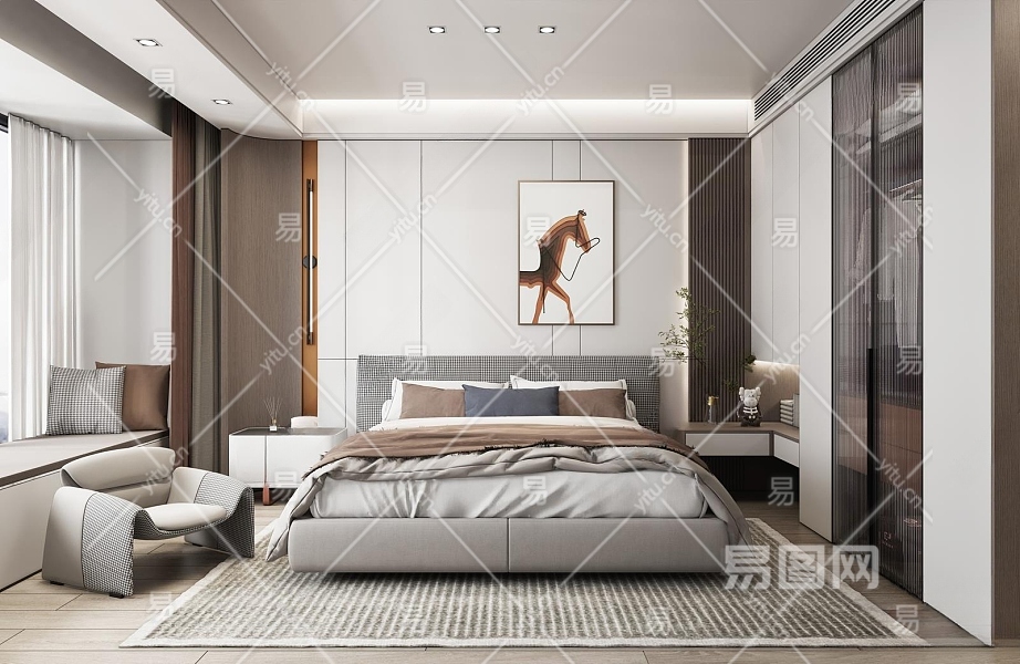 现代卧室3D模型下载