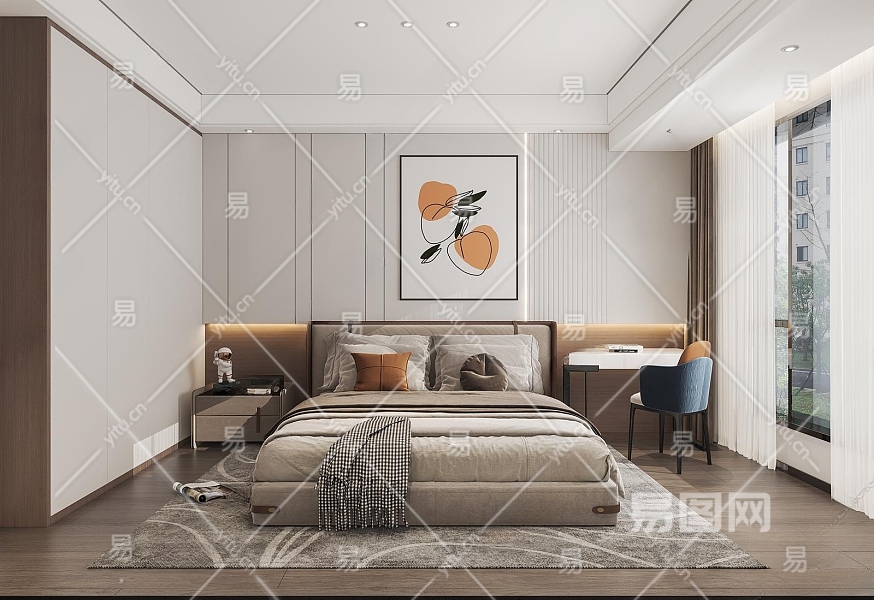 现代简约卧室3D模型下载