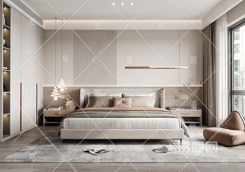 现代家居卧室3D模型下载