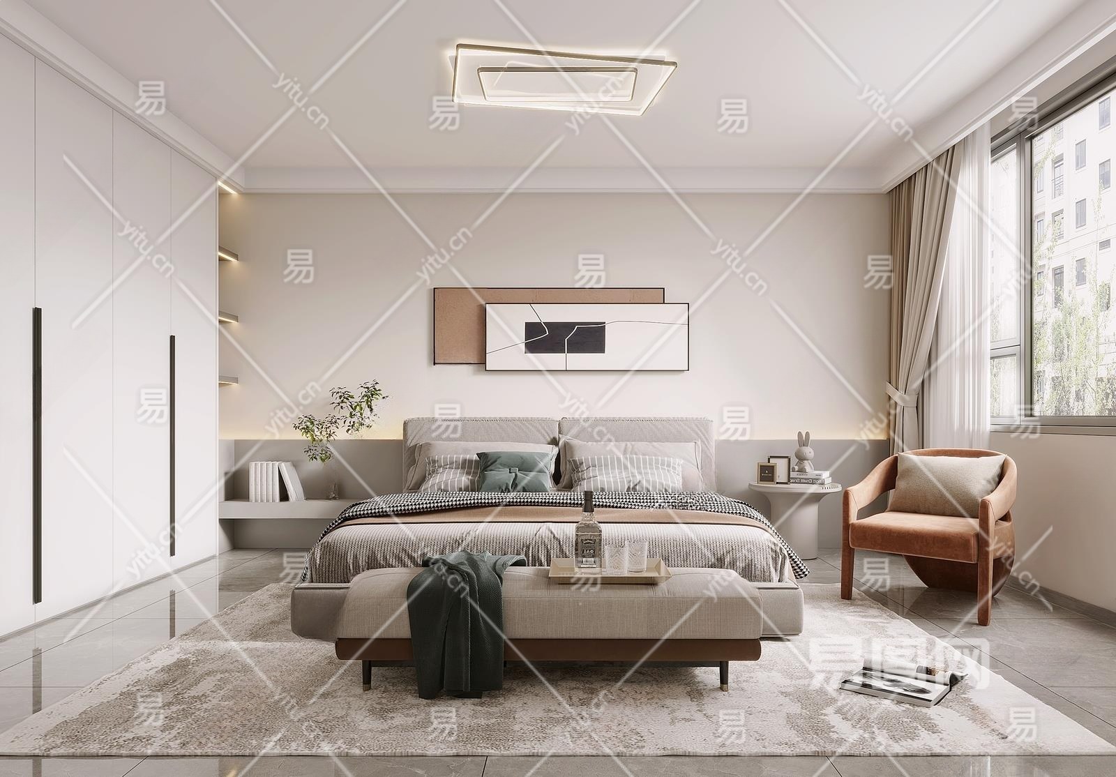 现代主卧3D模型下载