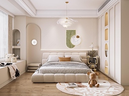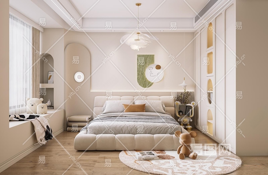 现代奶油风卧室3D模型下载