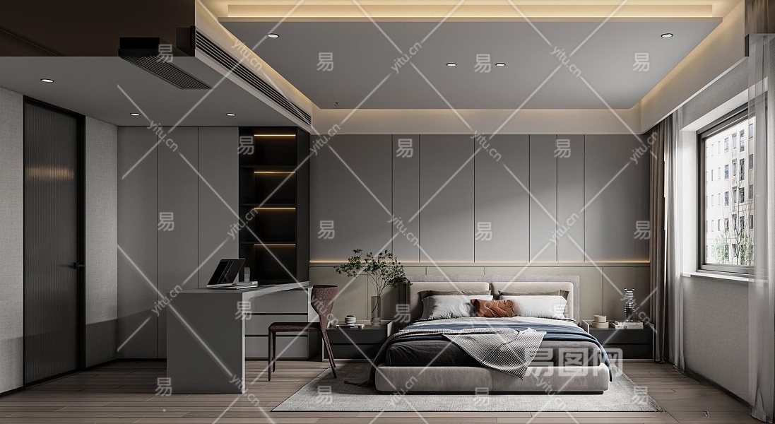 现代简约卧室3D模型下载