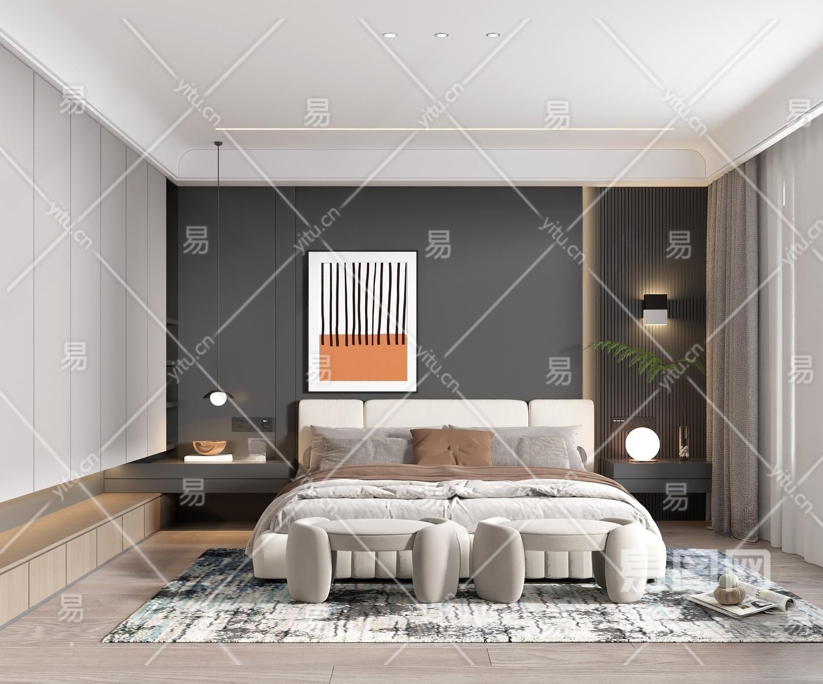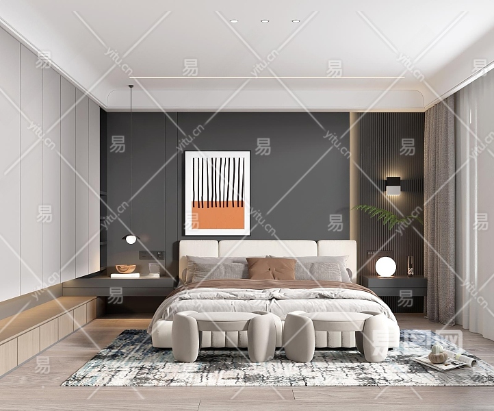 现代简约卧室3D模型下载