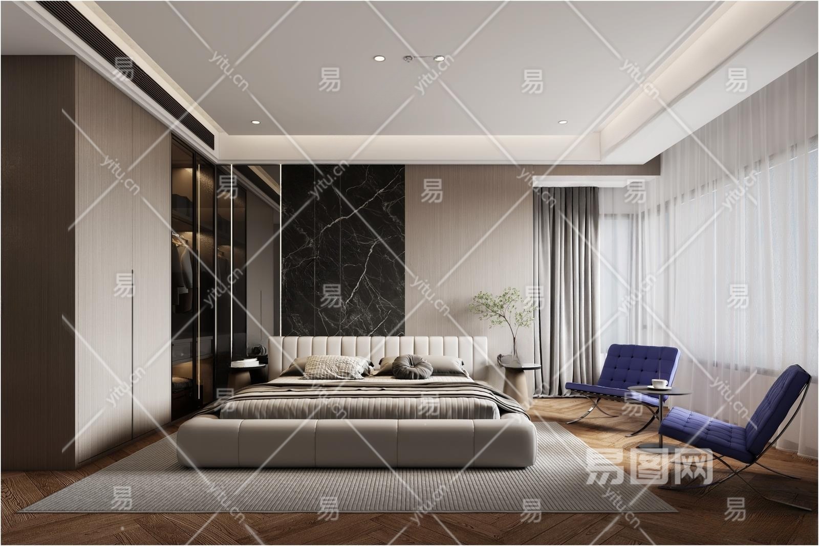 现代家居卧室3D模型下载