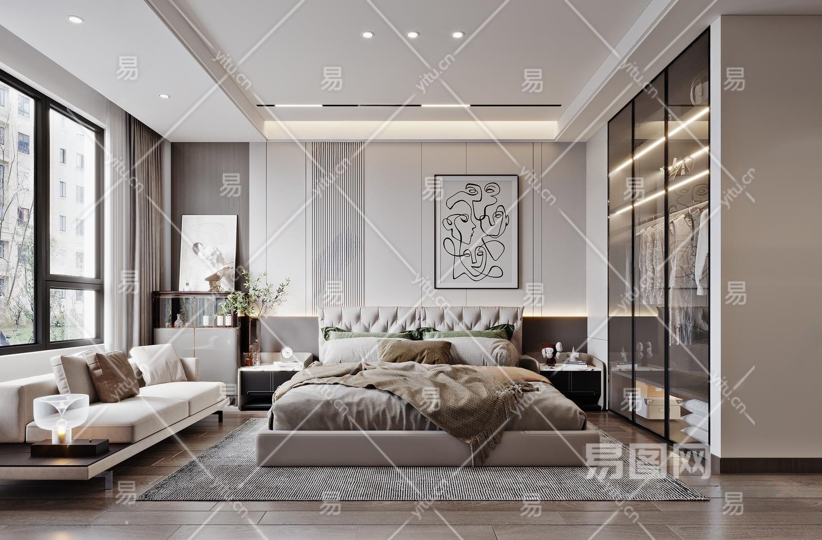 现代卧室3D模型下载