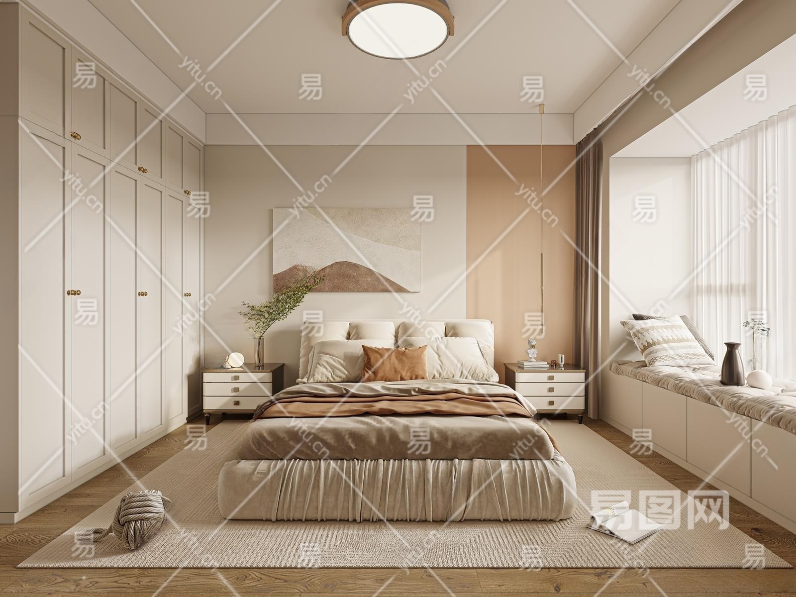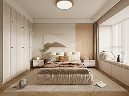 现代奶油风卧室3D模型下载