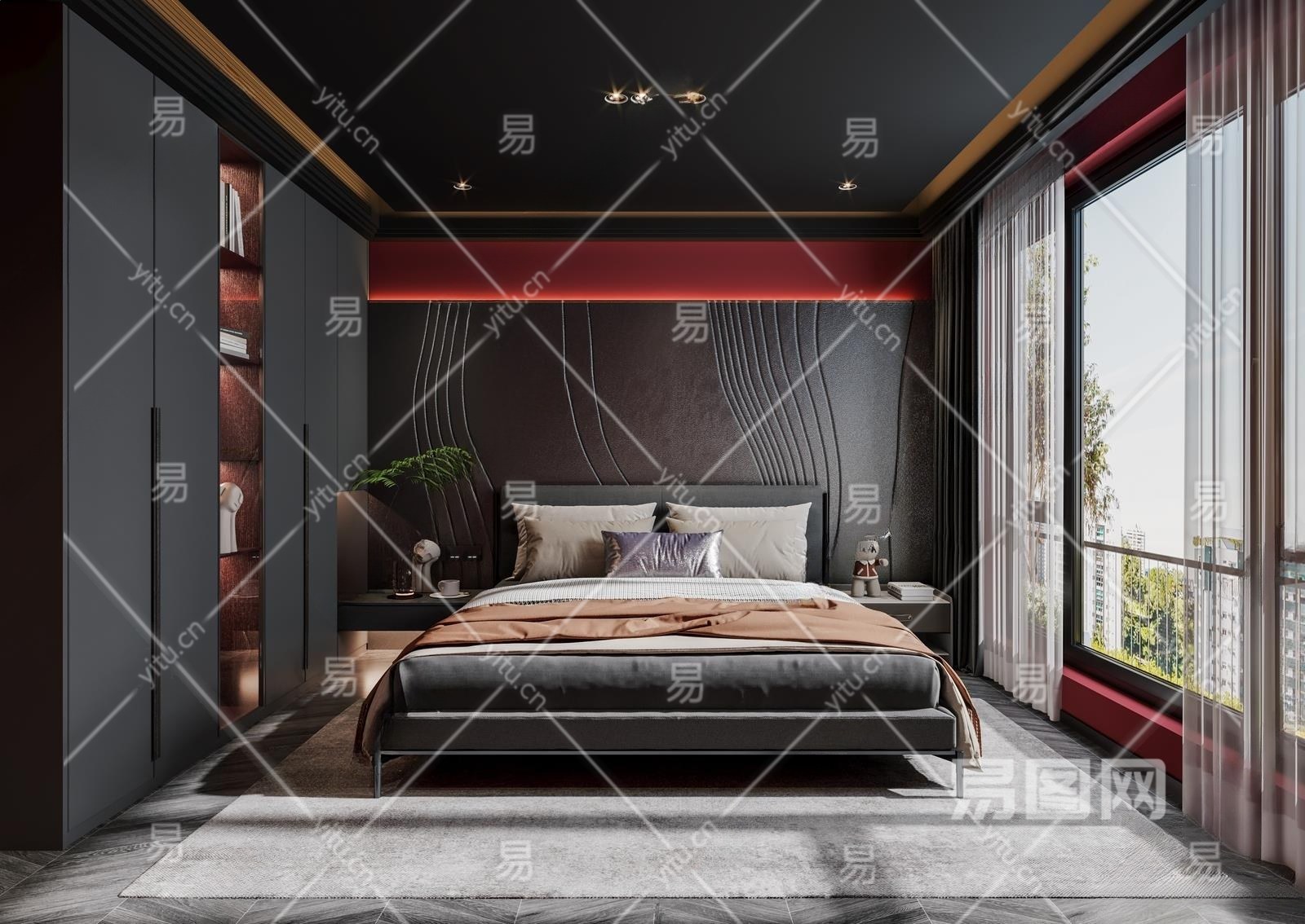 现代暗黑风卧室3D模型下载