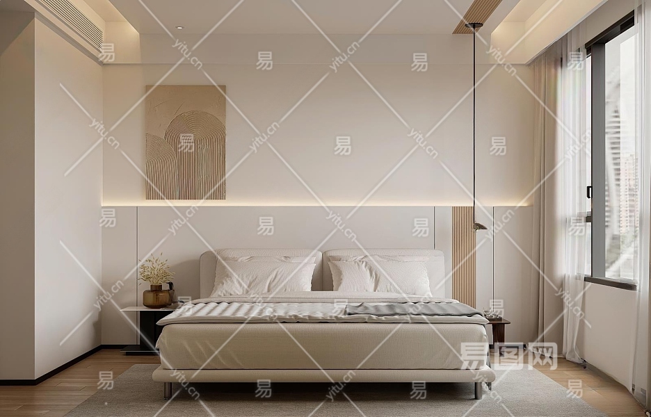 现代奶油风卧室3D模型下载