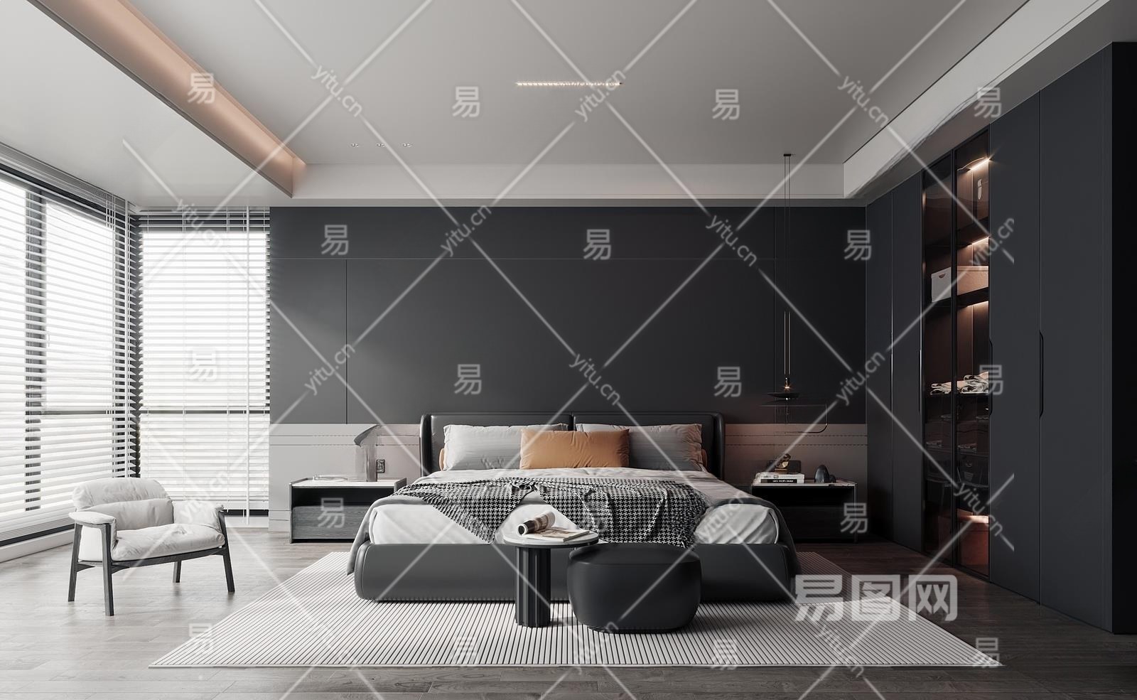 现代卧室3D模型下载