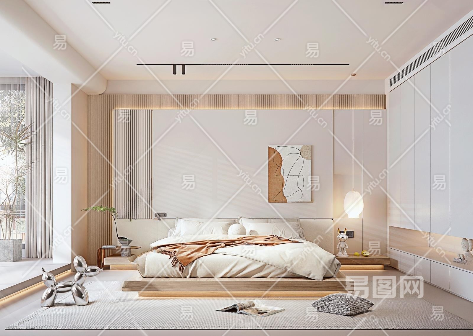现代简约卧室3D模型下载