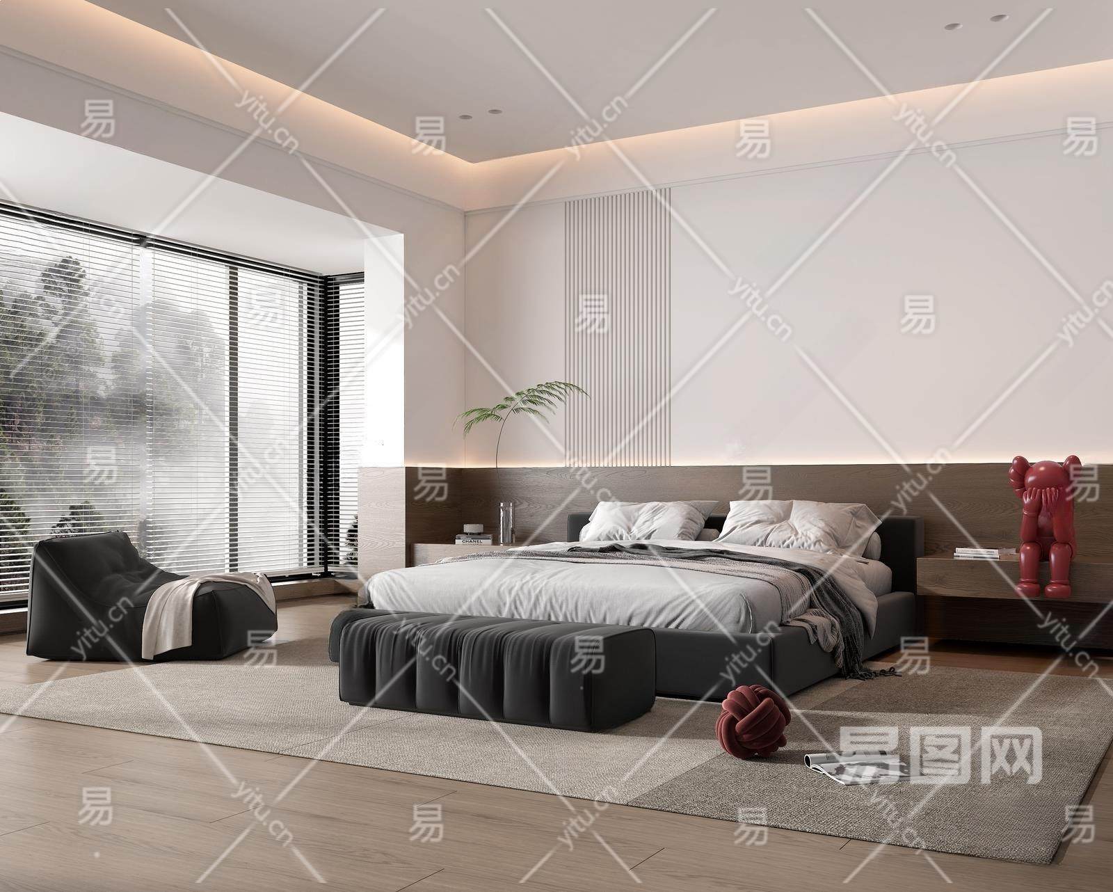 现代卧室3D模型下载