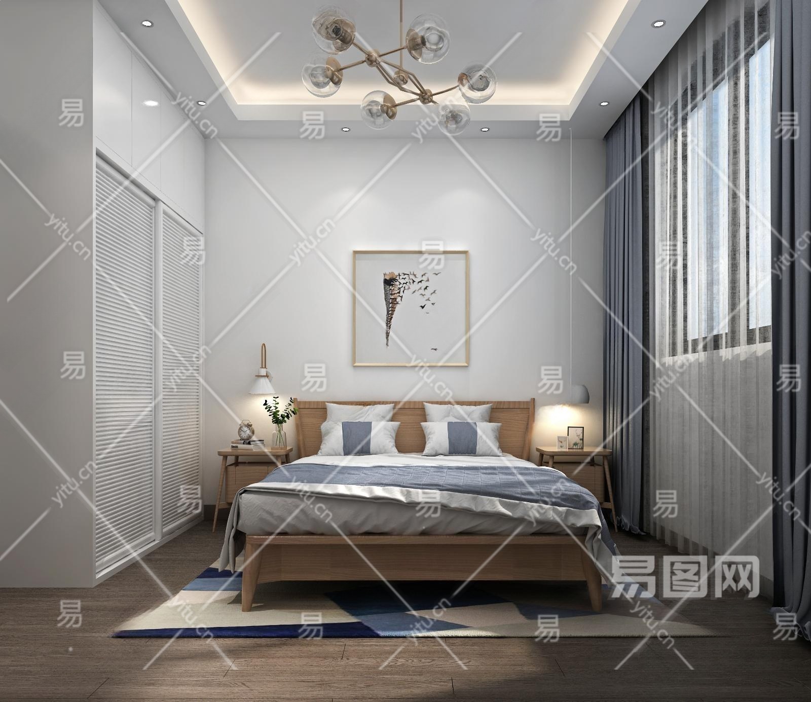 现代简约次卧3D模型下载