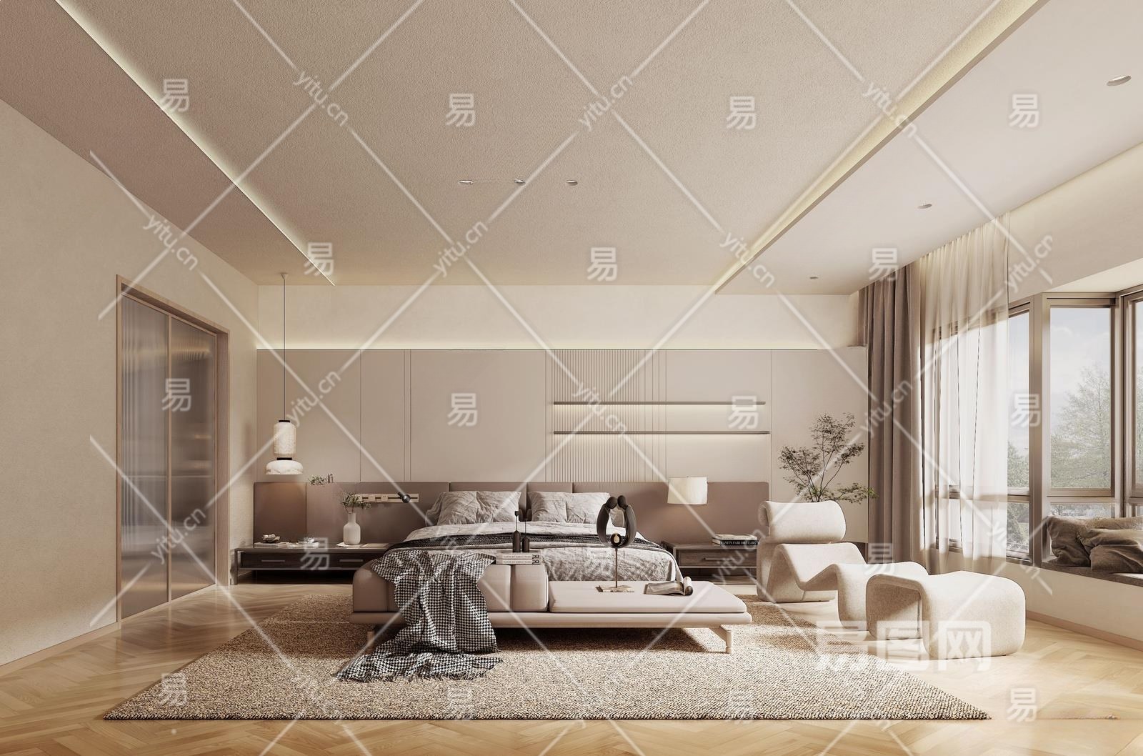 现代家居卧室3D模型下载