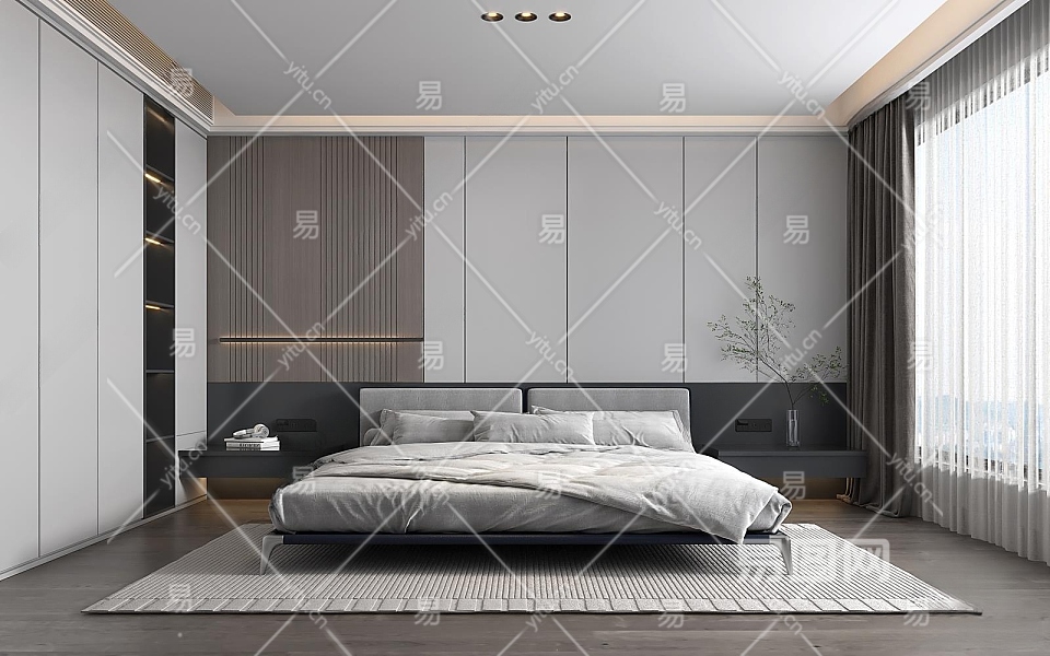 现代家居卧室3D模型下载
