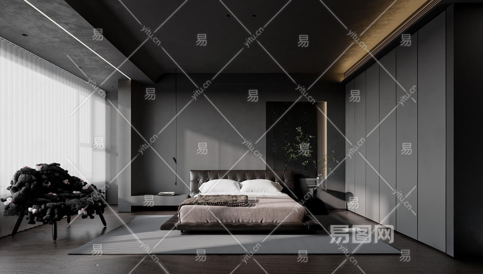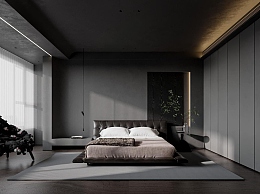 现代高级灰卧室3D模型下载