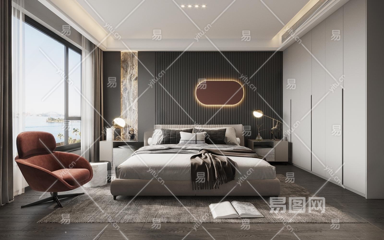 现代黑白灰卧室3D模型下载