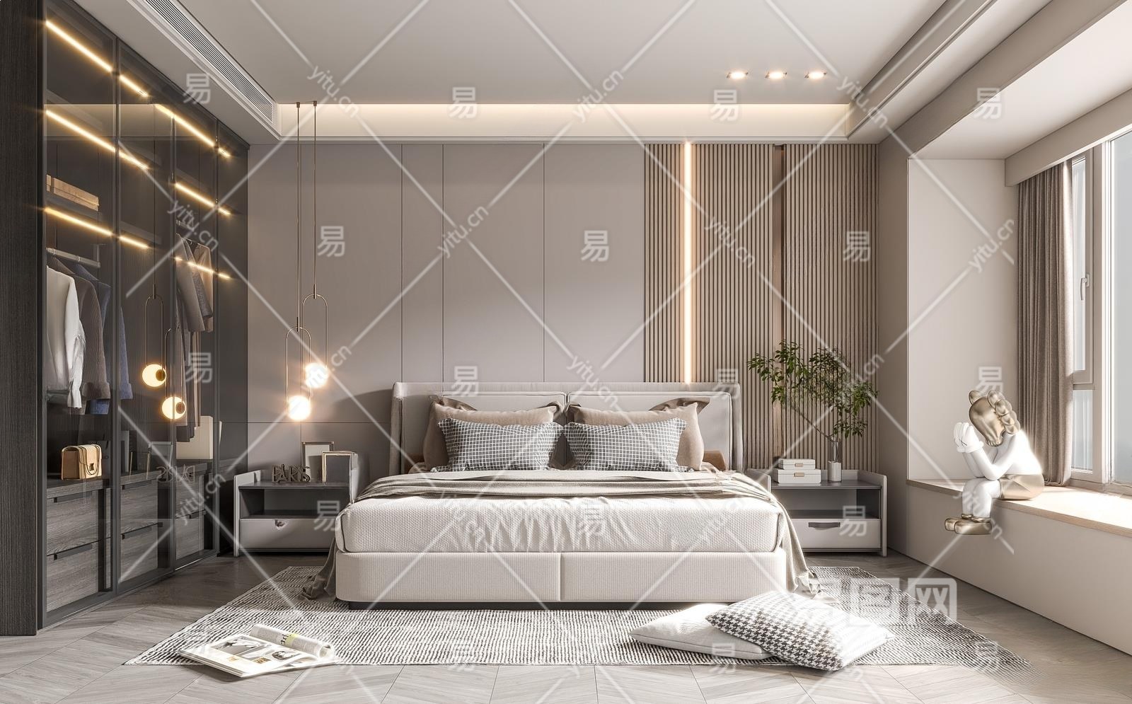 现代家居卧室3D模型下载