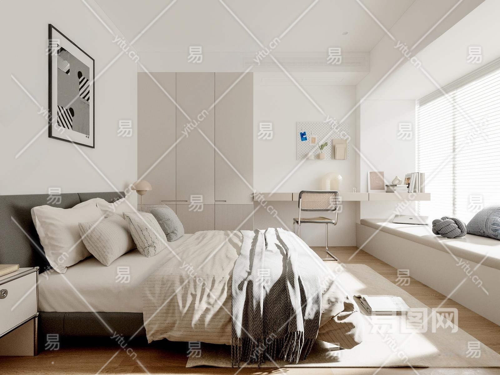 现代简约卧室3D模型下载