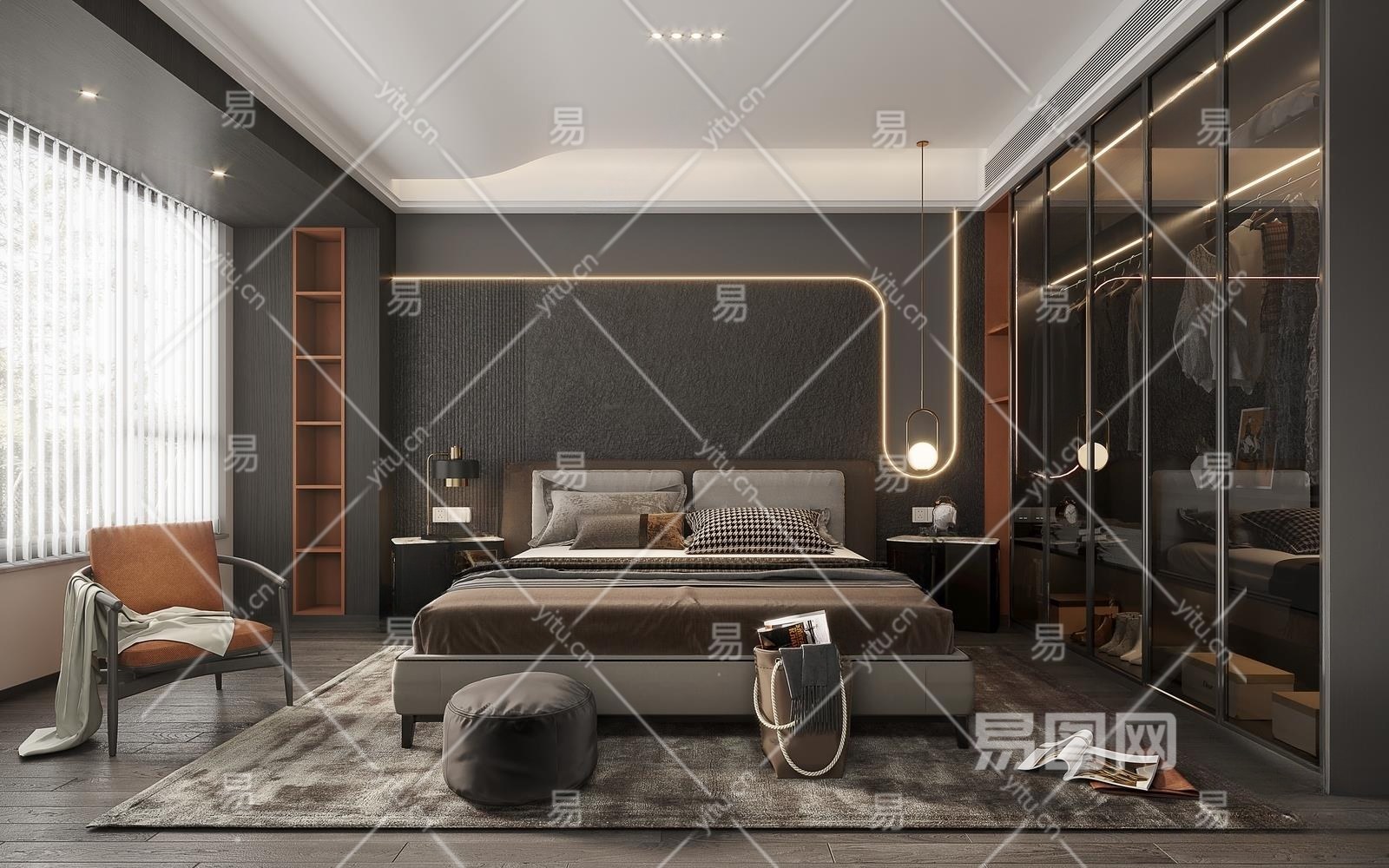 现代黑白灰卧室3D模型下载