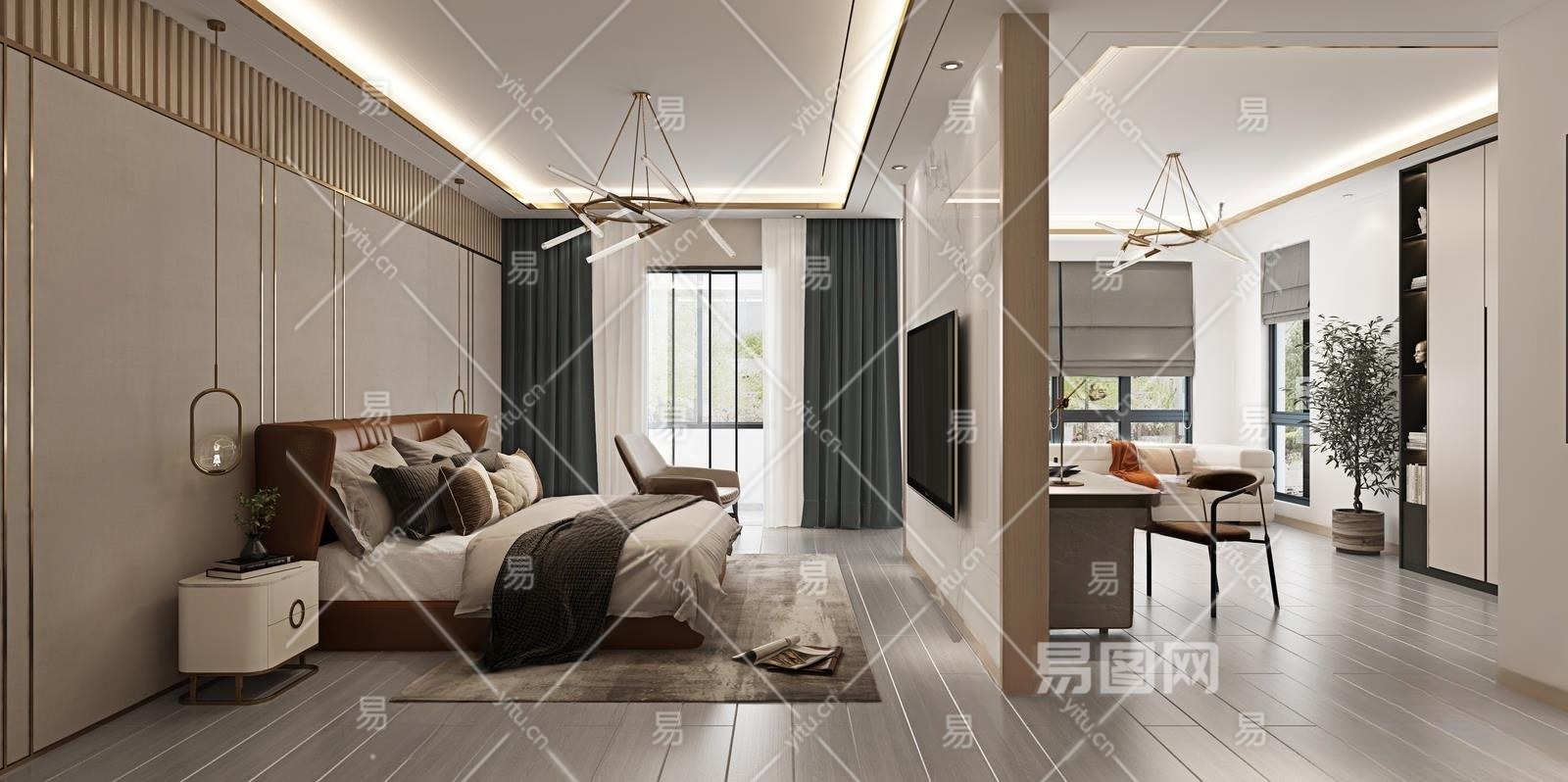 现代主卧3D模型下载