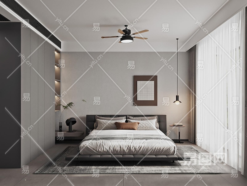 现代家居卧室3D模型下载