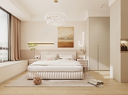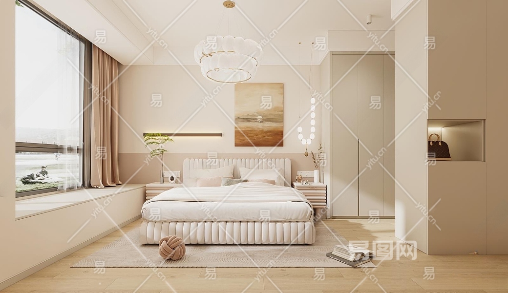 现代奶油风卧室3D模型下载