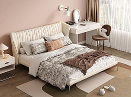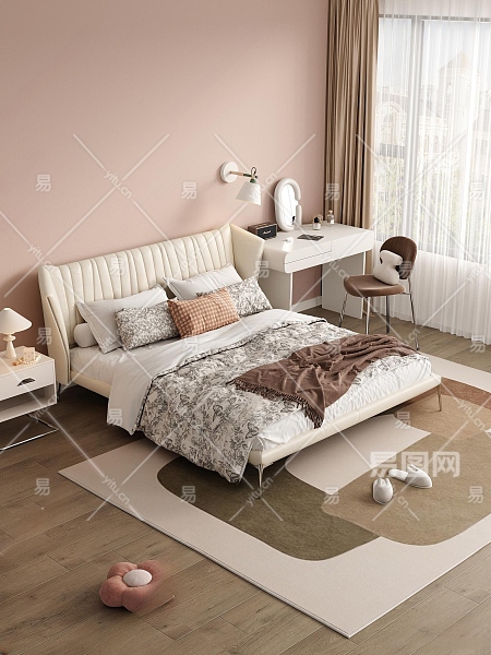 现代奶油风卧室3D模型下载