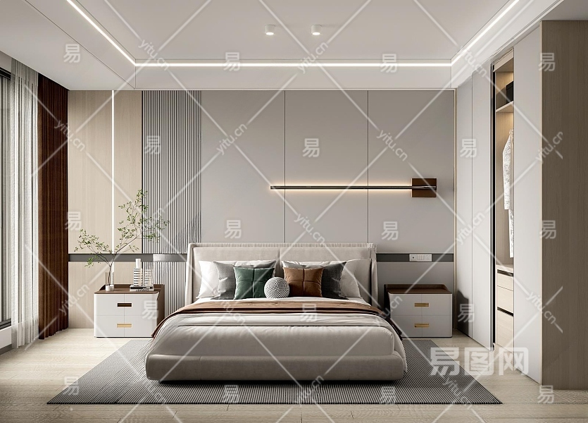 现代卧室3D模型下载