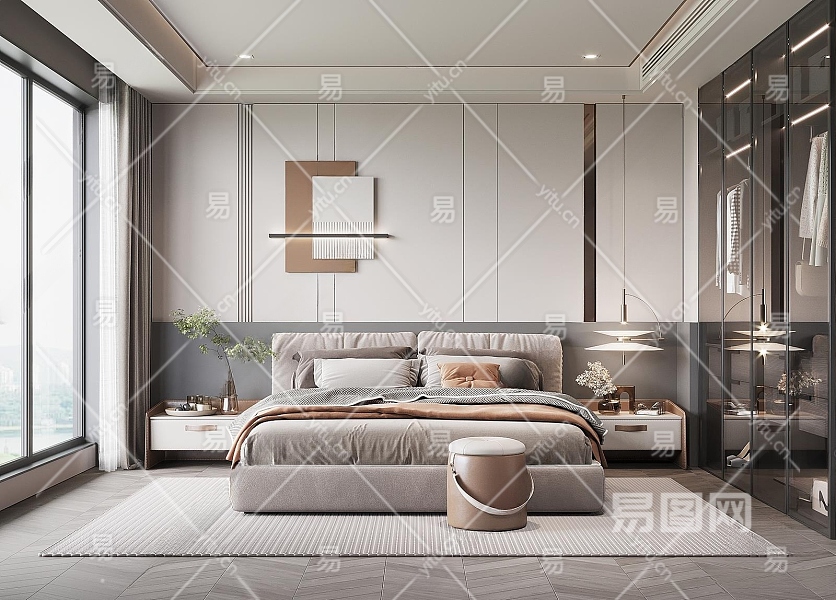 现代家居卧室3D模型下载