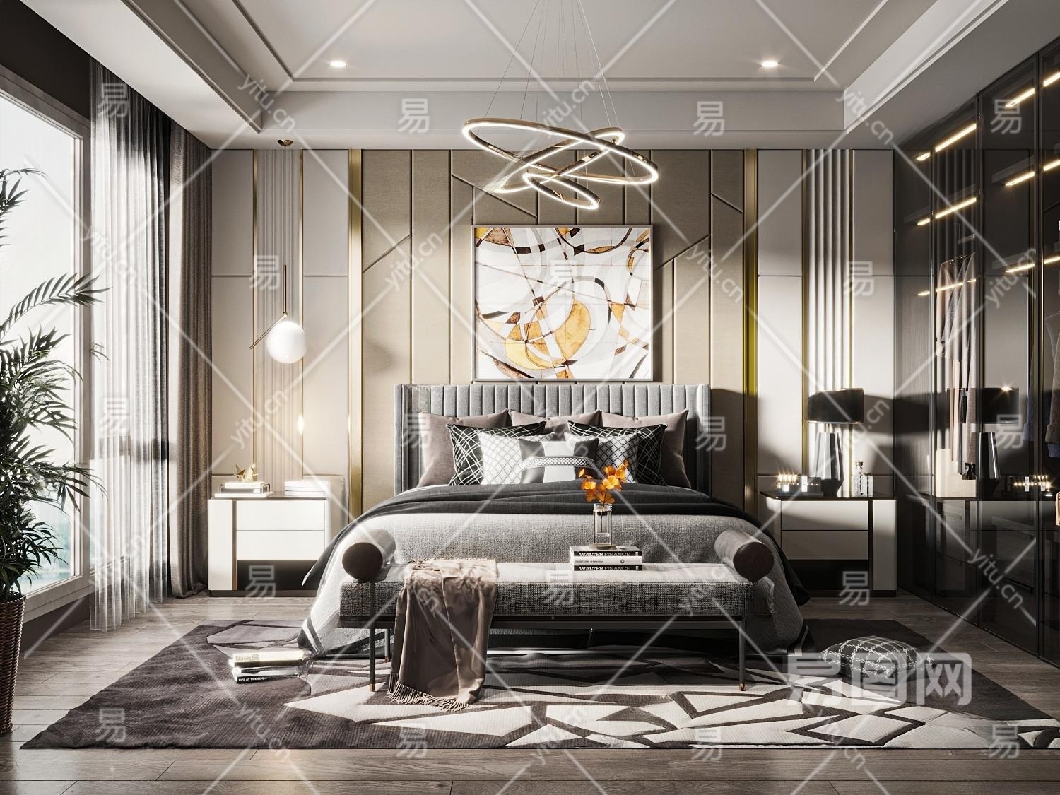 现代卧室3D模型下载