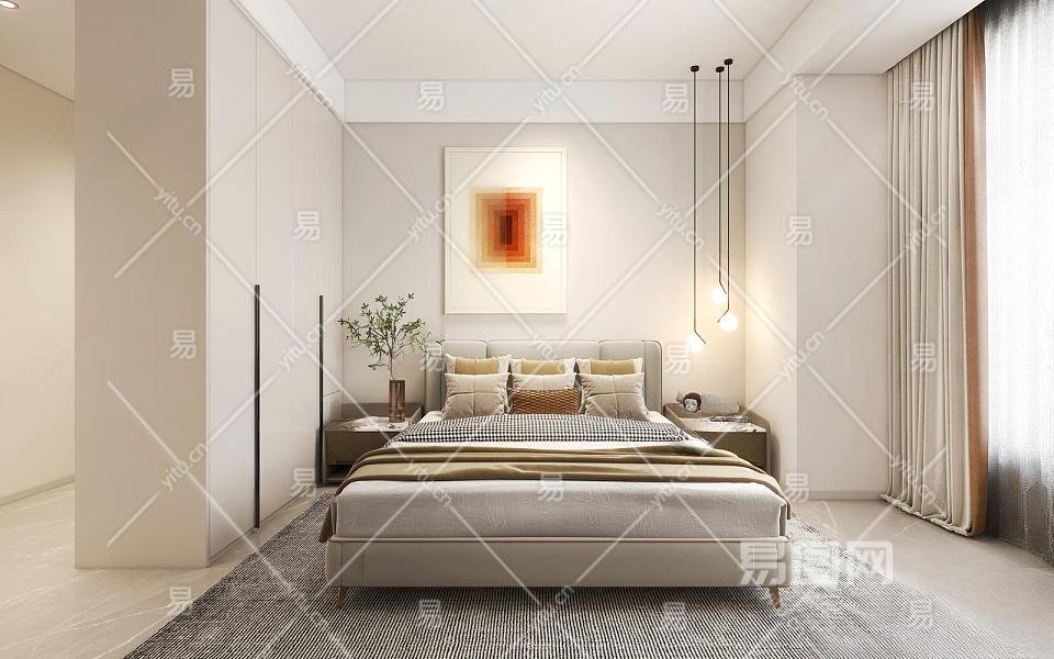 现代简约卧室3D模型下载